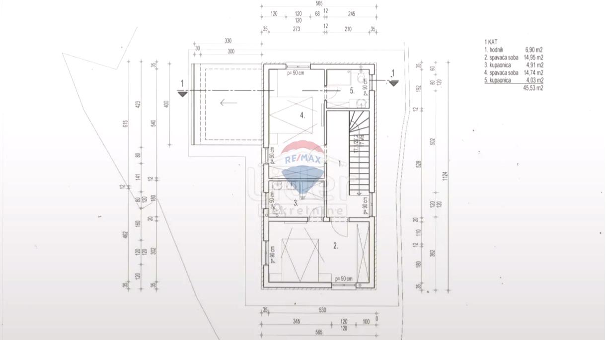Kuća će imati tri spavaće sobe, tri kupaonice, toalet, veliki boravak s kuhinjom i blagovaonom, unutarnje stepenice.