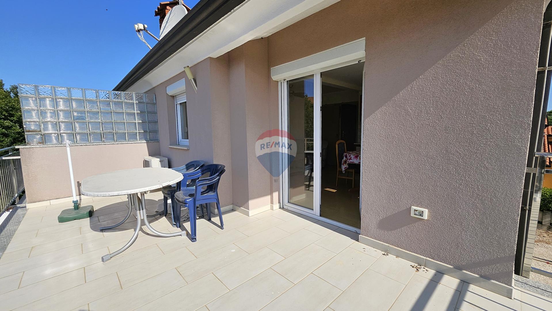 Ukupna površina stana iznosi 57,63 m², od čega stambeni dio obuhvaća 47,83 m². Stan je funkcionalno raspoređen te se sastoji od ulaznog hodnika, prostrane spavaće sobe s izlazom na terasu, kupaonice, dnevnog boravka s kuhinjom i blagovaonicom te dodatne terase s koje se pruža pogled na more.