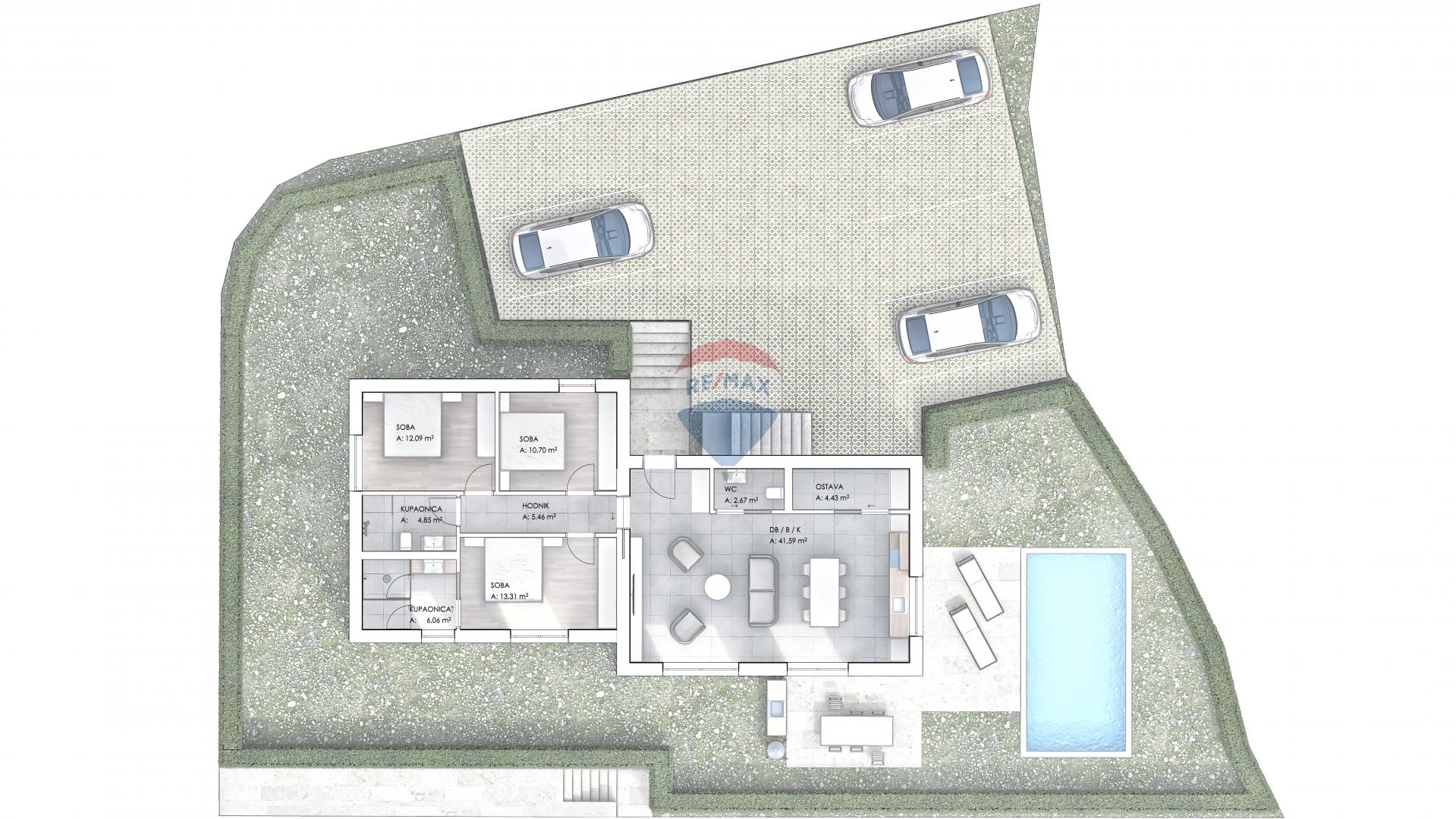 Baugrundstück zum Verkauf in der Stadt Krk mit eingereichtem Antrag auf Erteilung einer Baugenehmigung. Die Grundstücksfläche beträgt 609,59 m², und das Projekt sieht den Bau eines Wohngebäudes mit drei Wohnungen und einem Swimmingpool vor. Im Erdgeschoss ist eine Wohnung geplant, die sich über die gesamte Etage erstreckt und über drei Schlafzimmer, zwei Badezimmer, ein Gäste-WC, einen Abstellraum sowie eine Küche mit Essbereich und Wohnzimmer verfügt, mit direktem Zugang zum Garten und Pool. Im ersten und zweiten Stock sind zwei Maisonettewohnungen vorgesehen. Auf der ersten Ebene befinden sich jeweils zwei Schlafzimmer, zwei Badezimmer und ein Abstellraum, während sich auf der oberen Ebene eine Küche mit Essbereich und Wohnzimmer, ein weiterer Abstellraum sowie eine großzügige Terrasse mit Meerblick befinden. Auf dem Grundstück sind sechs Parkplätze vorgesehen. Die Entfernung zum Meer und zum Strand beträgt ca. 600 Meter.