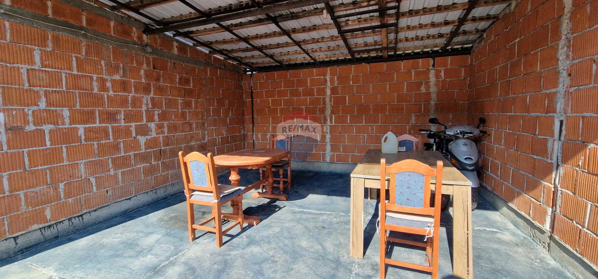 U nastavku dvorišta nalazi se kuća niskokatnica građena 90-ih godina, veličine 75 m2 s dnevno-blagovanskim prostorom, kuhinjom, kupaonicom i 2 spavaće sobe te terasom.